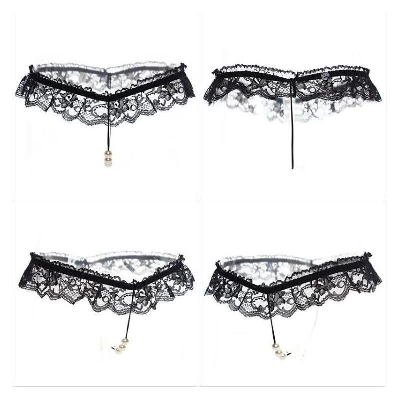 (情趣内衣)激情蕾丝开裆T裤女性低腰透明内裤蕾丝按摩开档性感丁字裤(黑色)